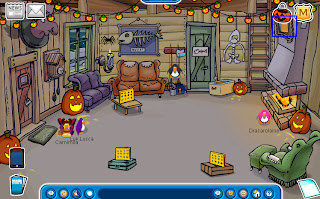 Aqui é a cabana, observem que o Mullet esta só com o espinho, e a varias abóboras espalhadas e aqui tambem tem um DOCE!!! Ele está logo abaixo do potinho de pegar doces e circulado em azul.